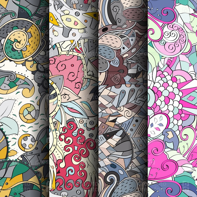 Набор ажурных красочных бесшовных узоров