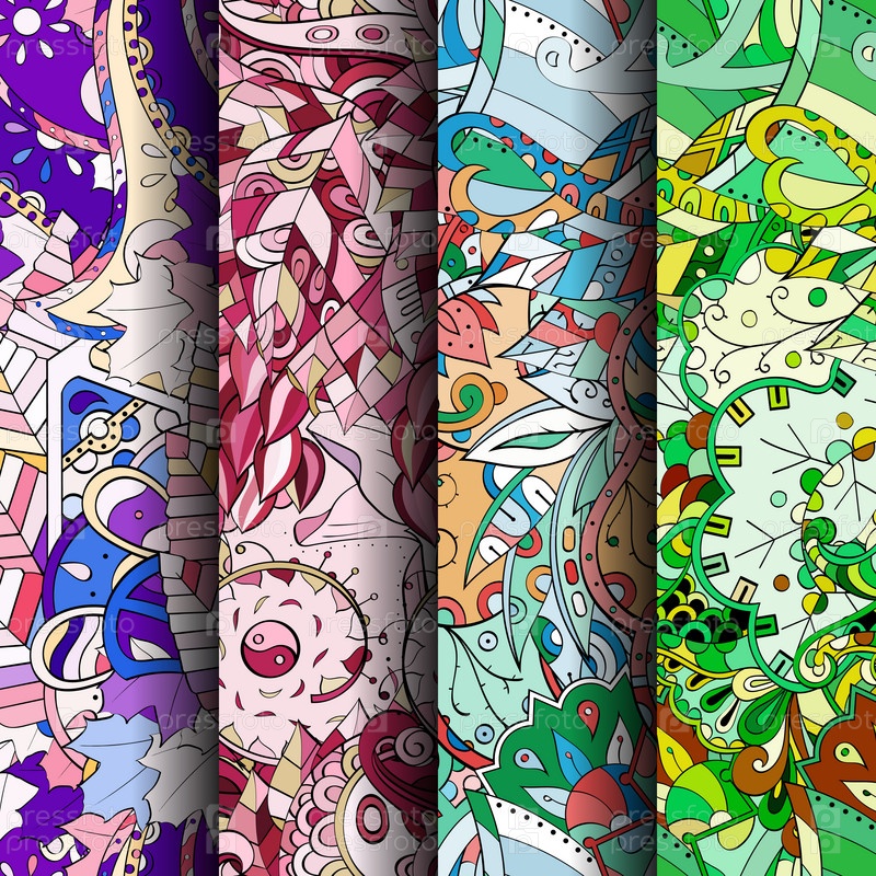 Набор ажурных красочных бесшовных узоров