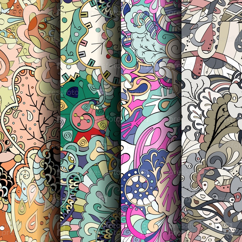 Набор ажурных красочных бесшовных узоров