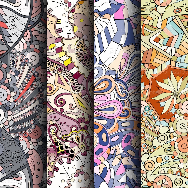 Набор ажурных красочных бесшовных узоров