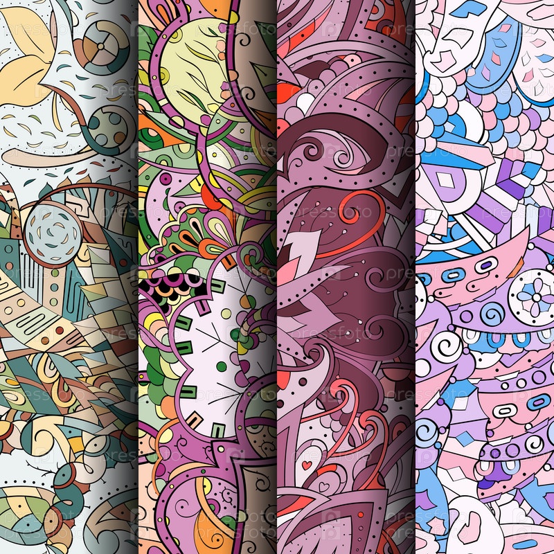 Набор ажурных красочных бесшовных узоров