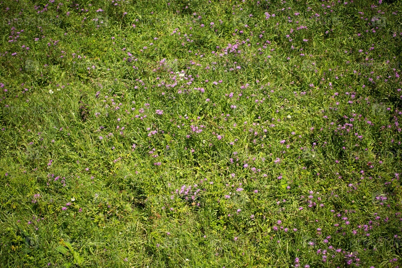 Зеленый луг с мелкими цветами