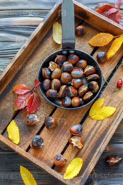 Вкусные жареные каштаны в чугунной сковороде