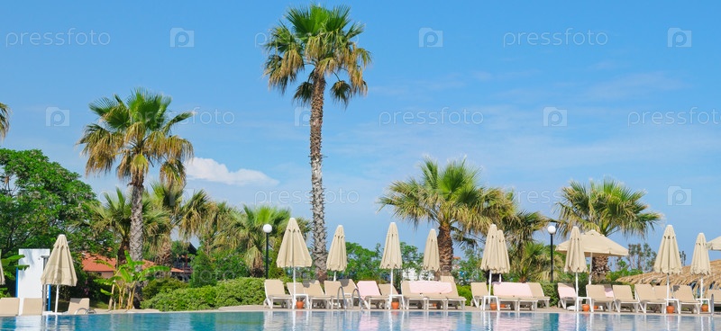 Открытый бассейн, пальмы и шезлонги