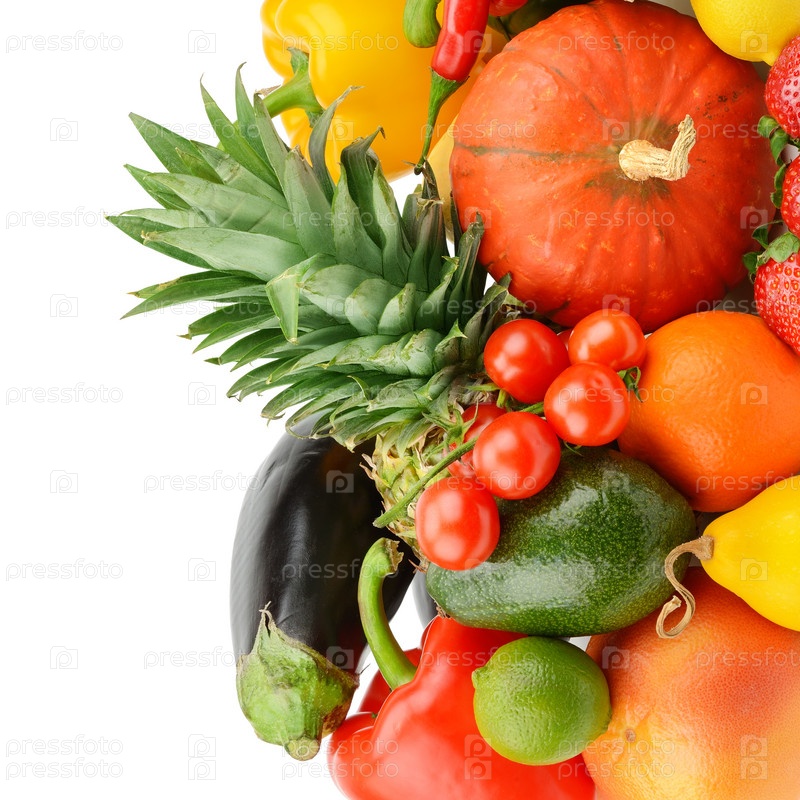 Фрукты и овощи, изолированные на белом фоне