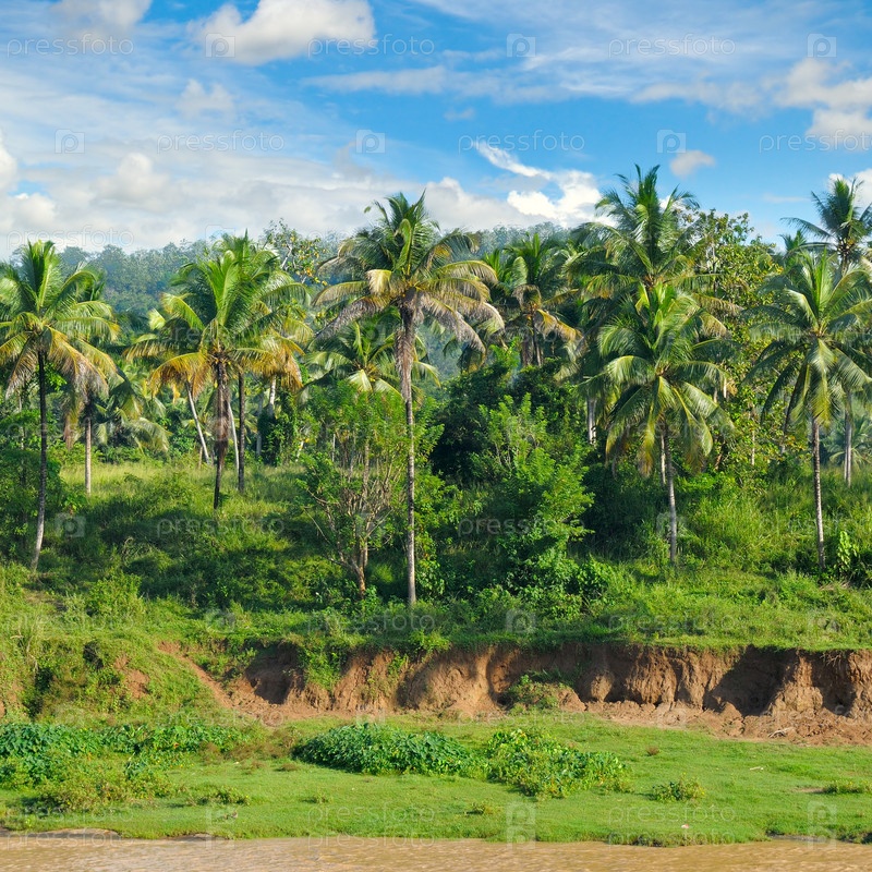 Тропический пальмовый лес и небо