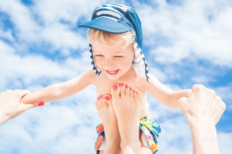Мама играет с сыном на пляже