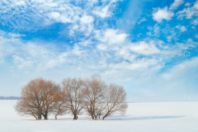 Поля и деревья в снегу