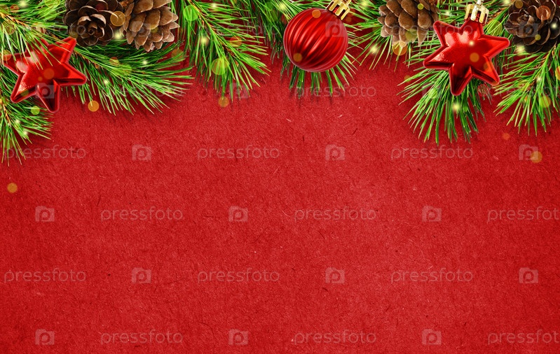 Праздничная рамка с елочными веточками, шишками и шарами