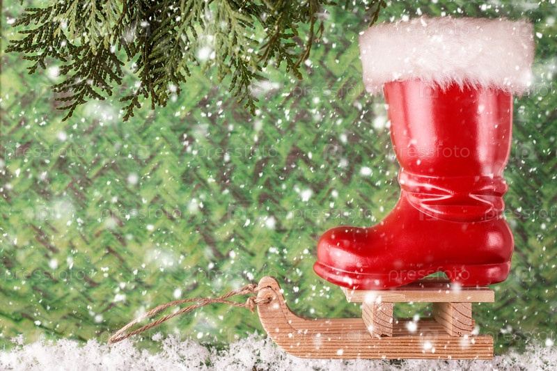 Красные рождественские сапоги на салазках