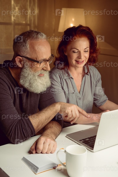 Муж и жена, используя ноутбук