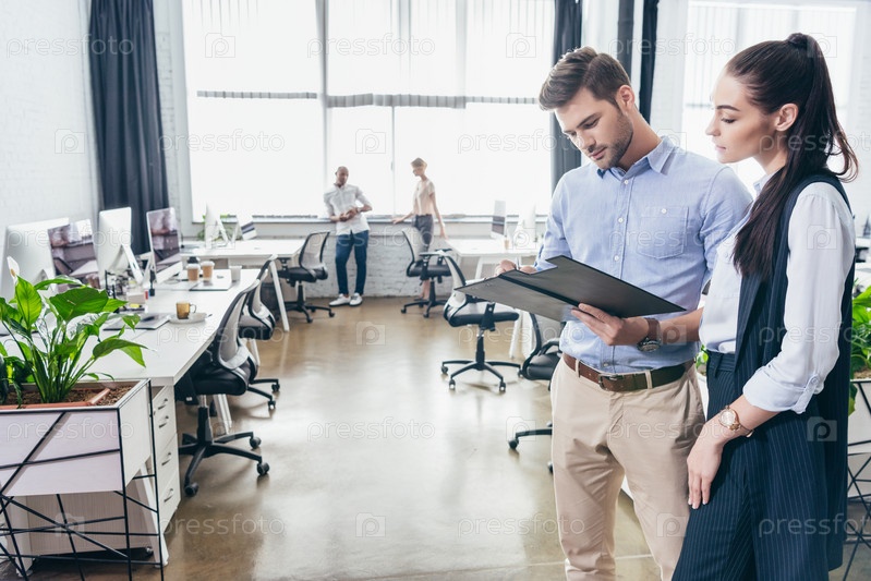 Молодой бизнесмен и предприниматель с папкой в офисе