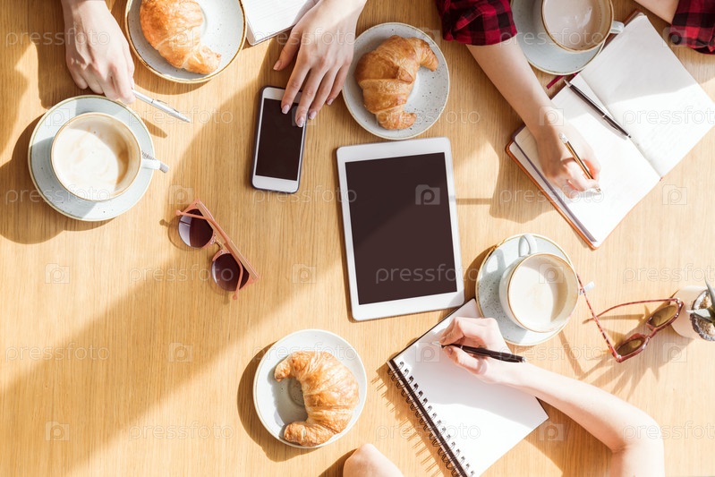 Используя цифровой планшет в кафе