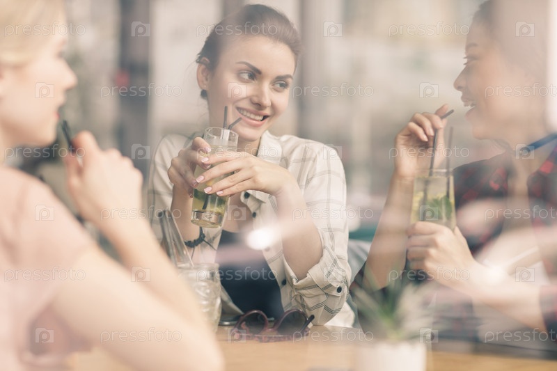 Молодые девушки пьют коктейли