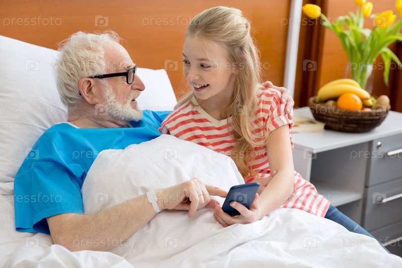 Дедушка и ребенок со смартфоном