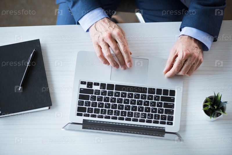 Бизнесмен, работающий с ноутбуком