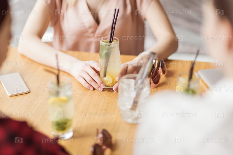 Молодые девушки пьют коктейли