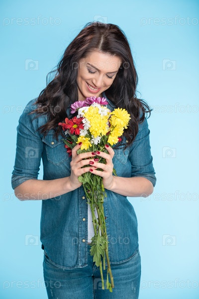 Портрет счастливой женщины с цветами