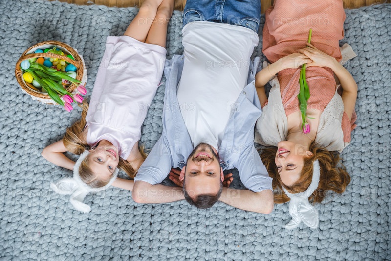 Семья, лежа на полу