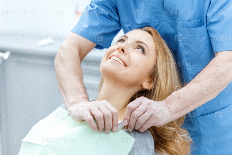 Женщина в стоматологической клинике со стоматологом