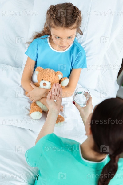 Доктор дает таблетки для маленького пациента