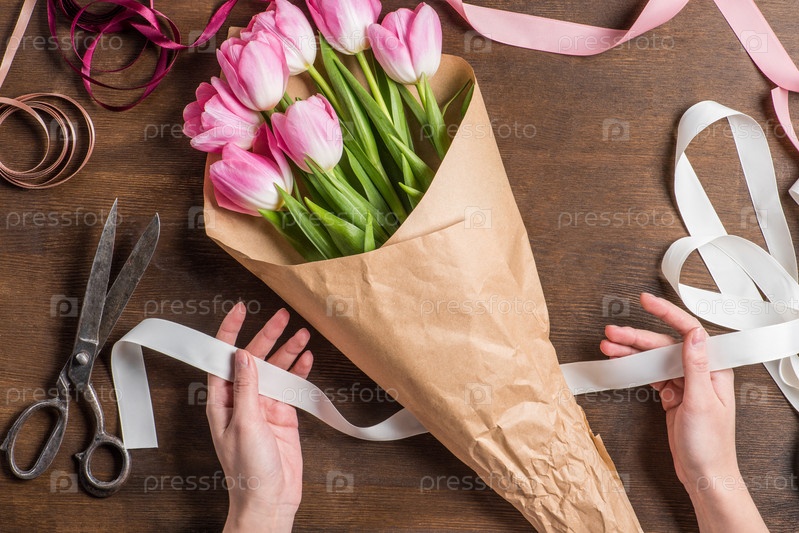 Розовые тюльпаны с лентой
