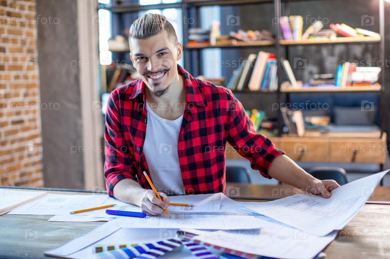 Мужской архитектор с чертежами
