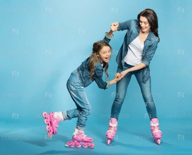 Мать и дочь на роликовых коньках