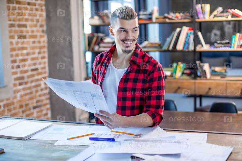 Мужской архитектор с чертежами