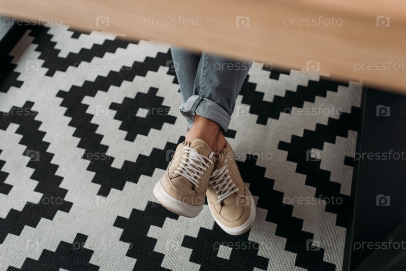 Ноги человека в стильной обуви и джинсах