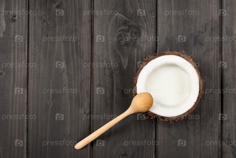 Кокос с молоком и деревянной ложкой