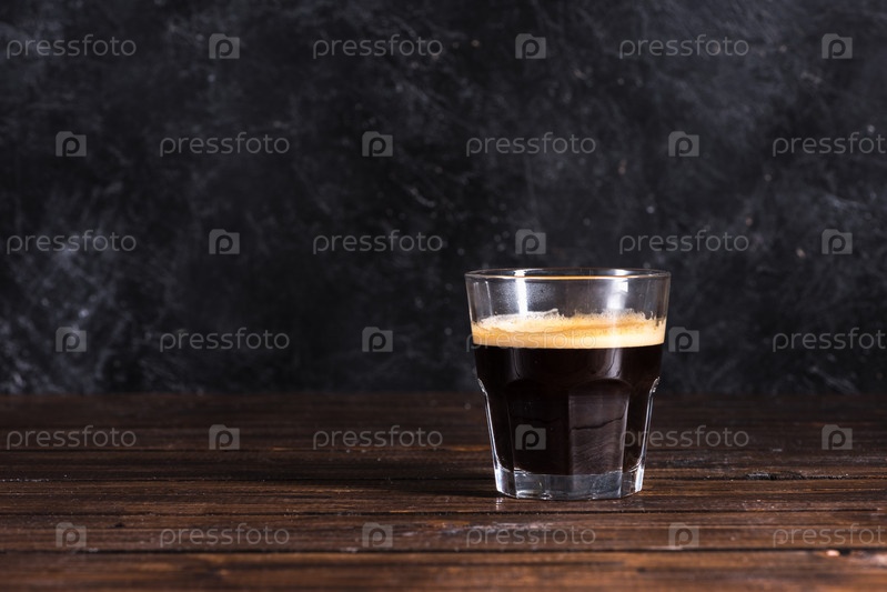Стакан свежеприготовленного темного кофе на деревянном столе