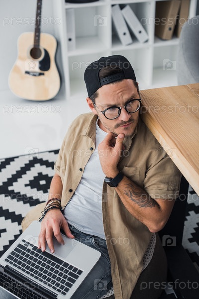 Красивый молодой бизнесмен, работающий с ноутбуком