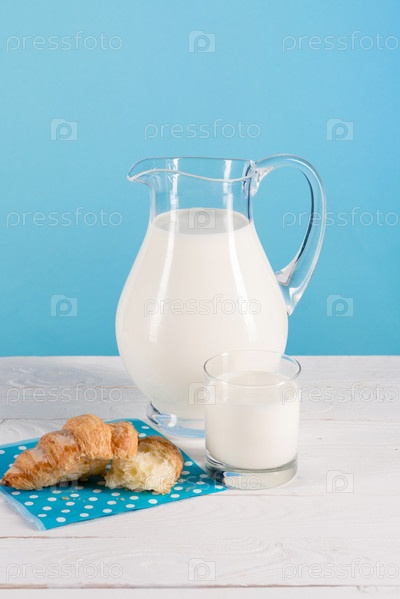 Молоко в кувшине с круассанами