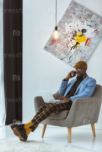 Красивый модный афро-американский бизнесмен в клетчатых брюках и голубом пиджаке