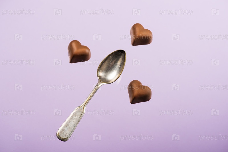 Вид сверху шоколадных конфет и ложки