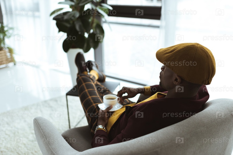 Красивый стильный афро-американский мужчина с чашкой кофе