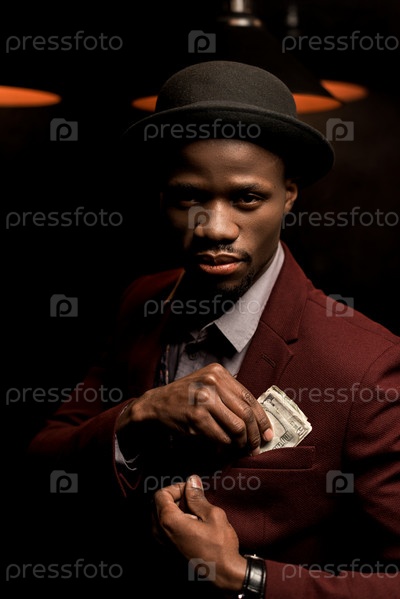 Красивый стильный афро-американский мужчина в темной комнате