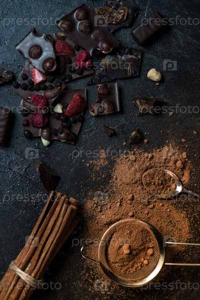 Кусочки шоколада с орехами и ягодами с корицей