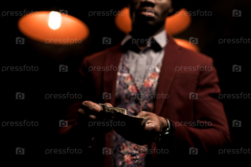 Модный афро-американский человек с долларами