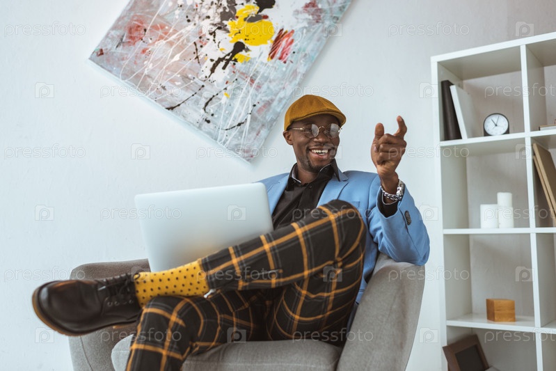 Афро-американский бизнесмен в клетчатых штанах и синей куртке