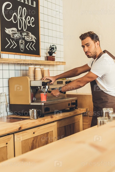 Приготовления кофе с помощью кофеварки в кафе