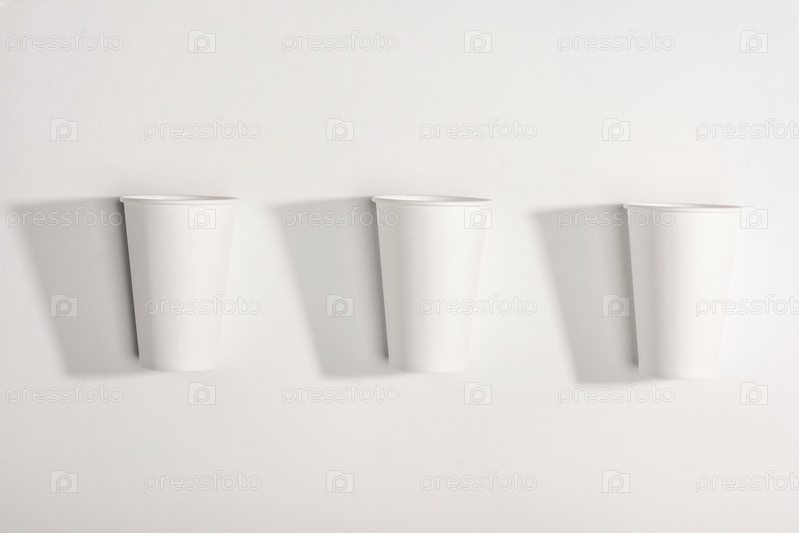 Вид сверху белых одноразовых бумажных стаканчиков