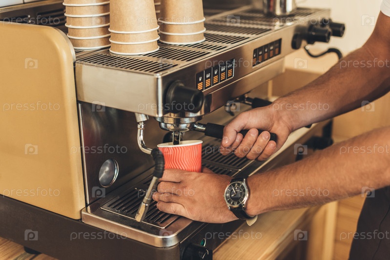 Приготовление кофе с помощью кофеварки в кафе