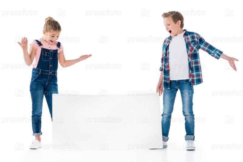 Удивленные маленькие дети, глядя на пустой плакат