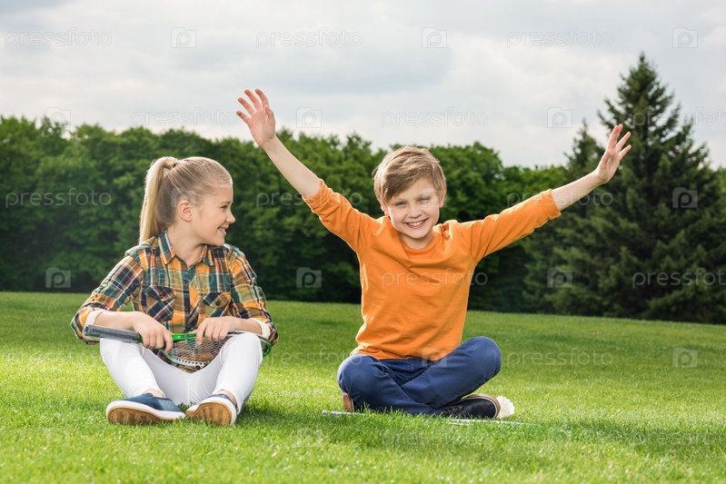 Очаровательные маленькие дети на траве