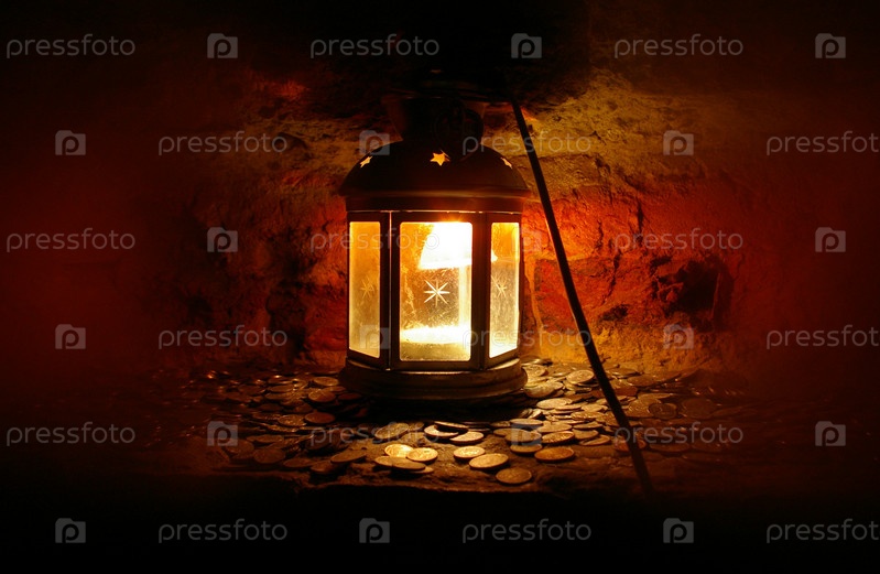 Лампа на куче монет