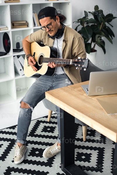 Красивый молодой музыкант, играющий на гитаре