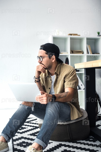 Красивый молодой бизнесмен, работающий с ноутбуком в современном офисе