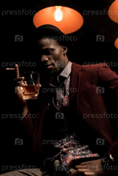 Элегантный афро-американский мужчина в темной комнате